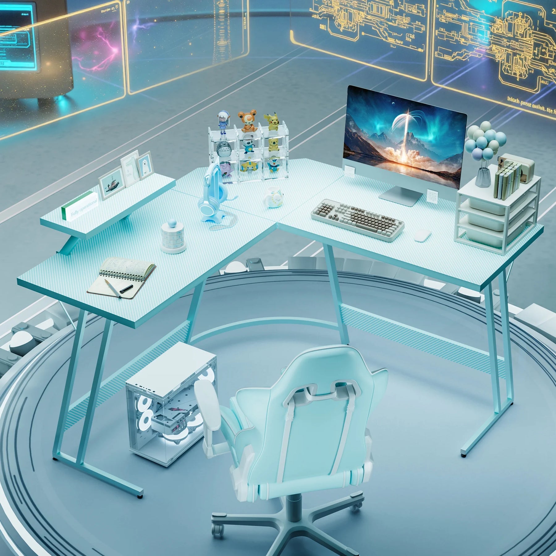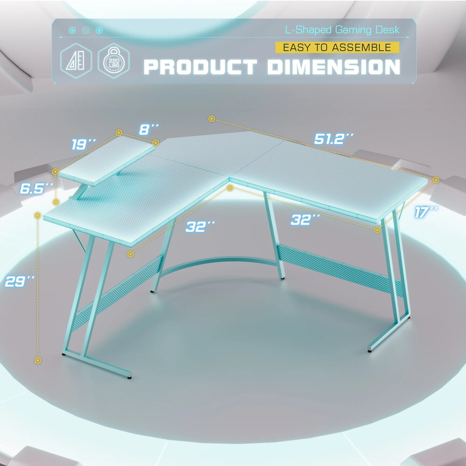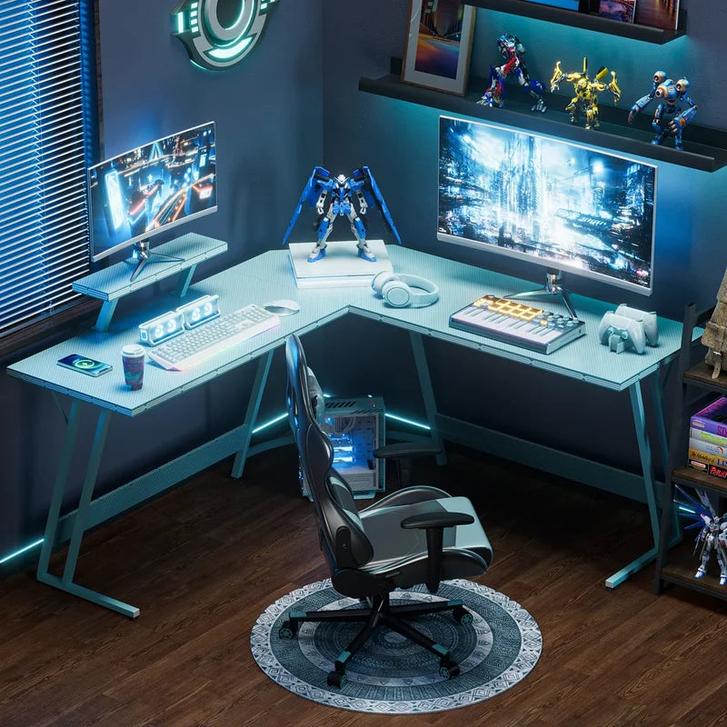 L-Shaped Gaming Desk 51.2 Inches Corner Office Gaming Desk with Removable Monitor Riser, Blue