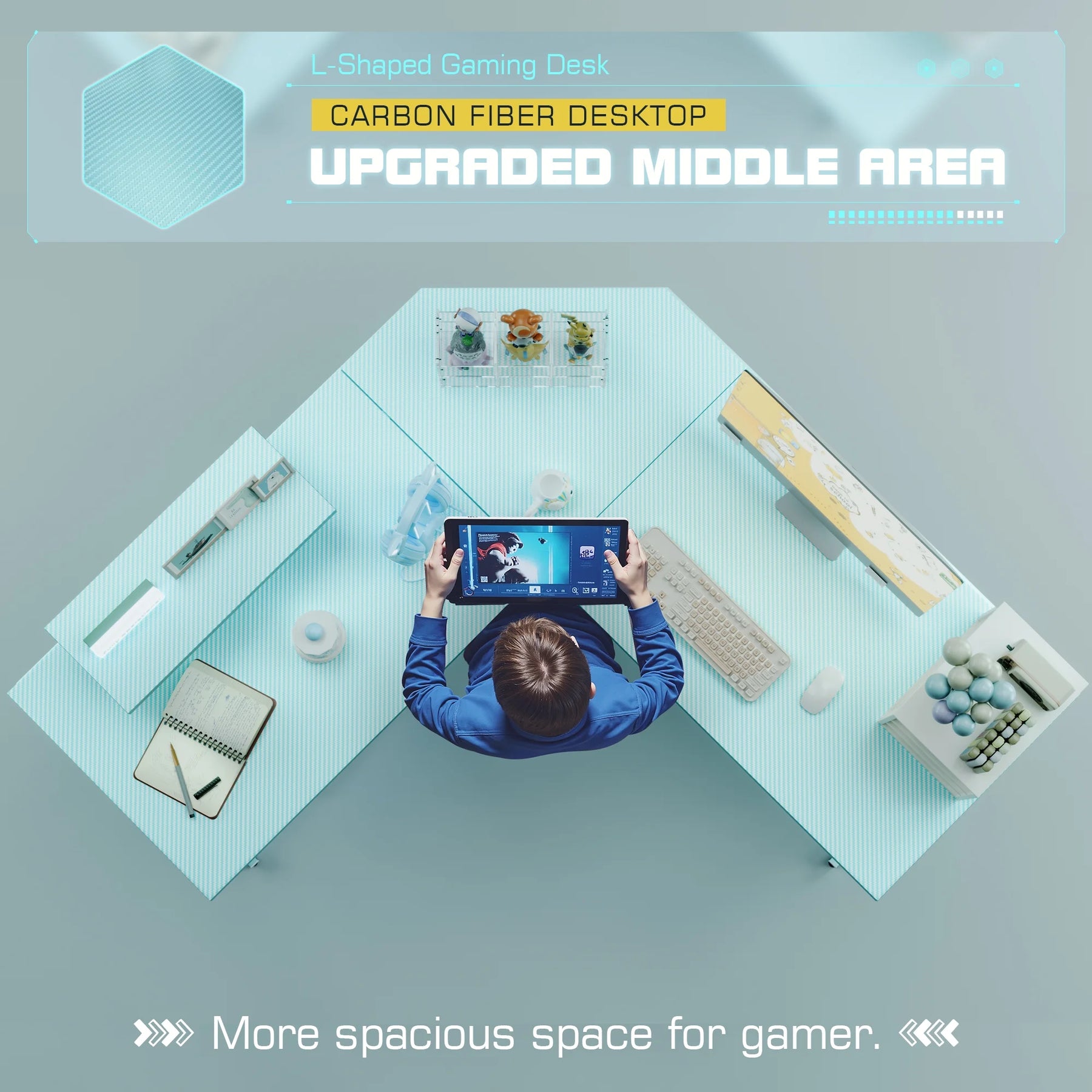 • Stylish carbon fiber gaming desk with anti-skid surface.